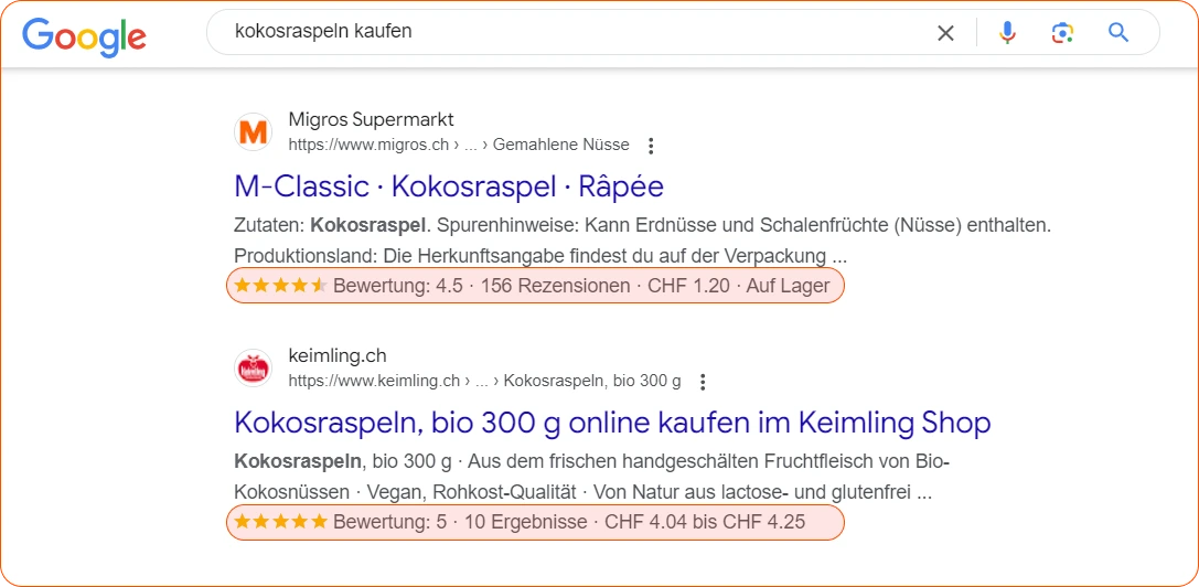 For example, on a product page, structured data can enable search engines to display prices, availability, and ratings directly—without users having to open the page first. These highlighted displays in the search results are called . They provide users with helpful information at a glance, increasing the likelihood that they will click through to your page.