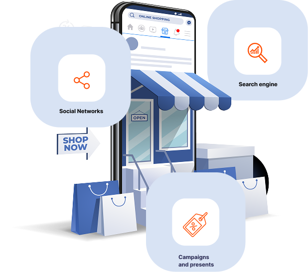 Once launched, your online shop doesn't stand alone. By linking it to other platforms, it's placed in a broader context and can be found by your customers in various ways.