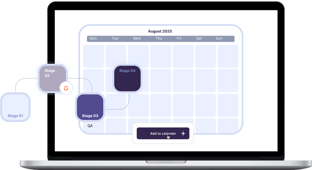 - Color-coded stages and deadlines